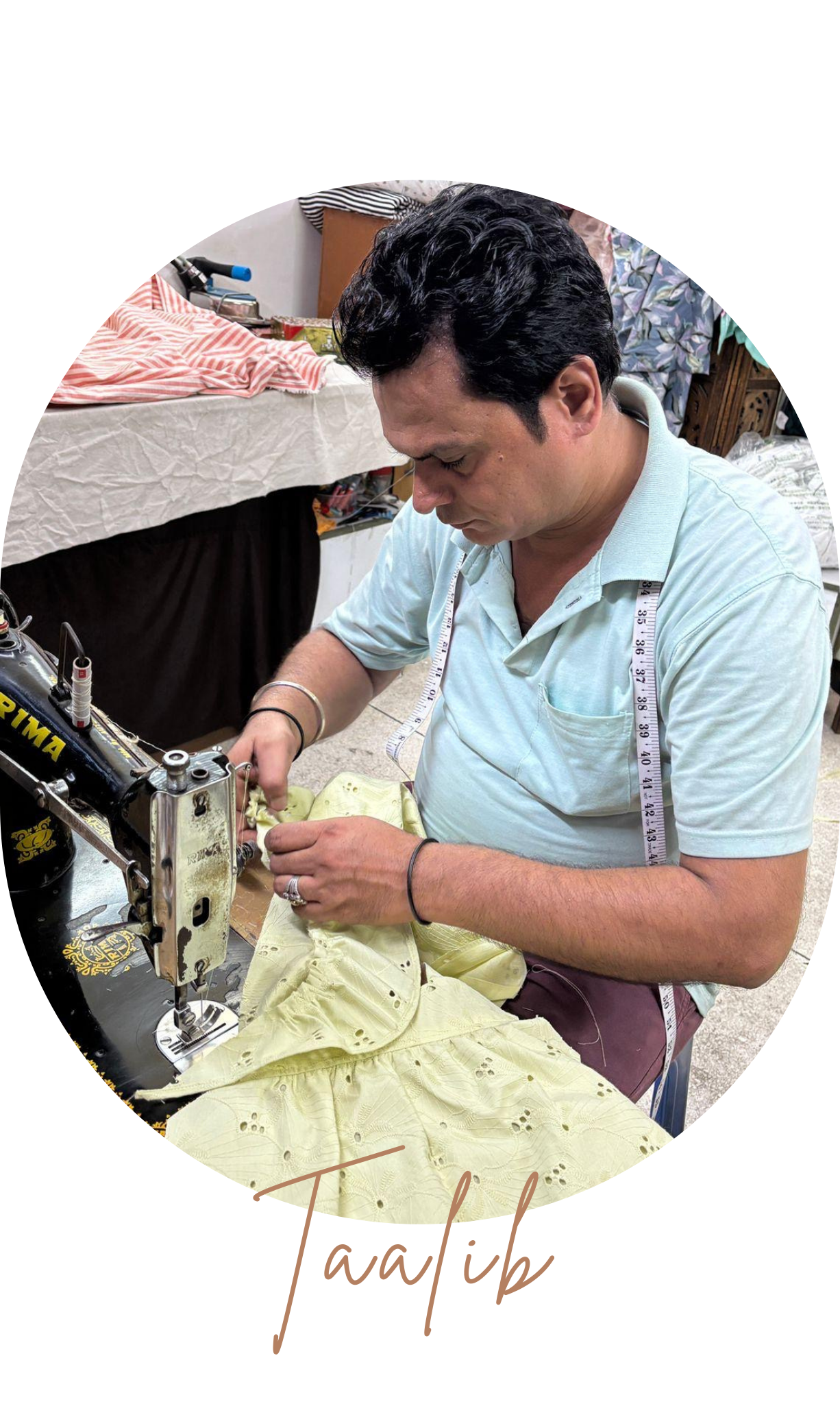 With 25 years of stitching experience, Taalib is the magic behind our perfectly sewn pieces. When he’s not at the machine, he’s enjoying good food or hanging out with his pet rabbits 🐇. Every thread he sews carries a little extra love.